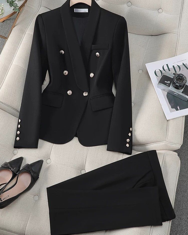 * کفشهای پاشنه بلند یا تخت، کیفهای دستی یا دوشی، و جواهرات ظریف، انتخابی مناسب برای کت و شلوار اداری هستند.